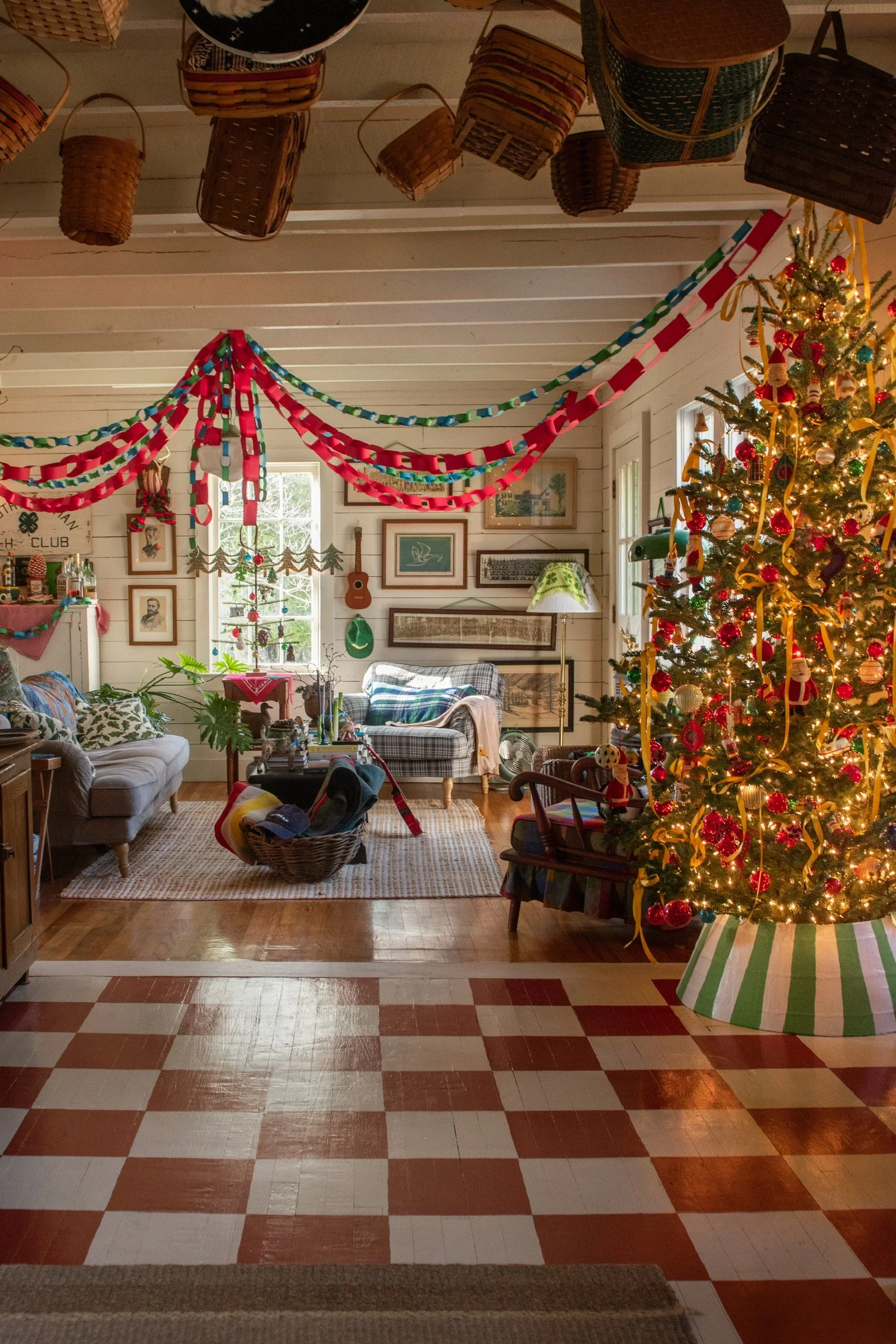 I’m giving away a mini basket garland, featuring a collection of six unique mini baskets, looped onto a strand of seagrass. It’s a sweet adornment for the Holidays, or any day.