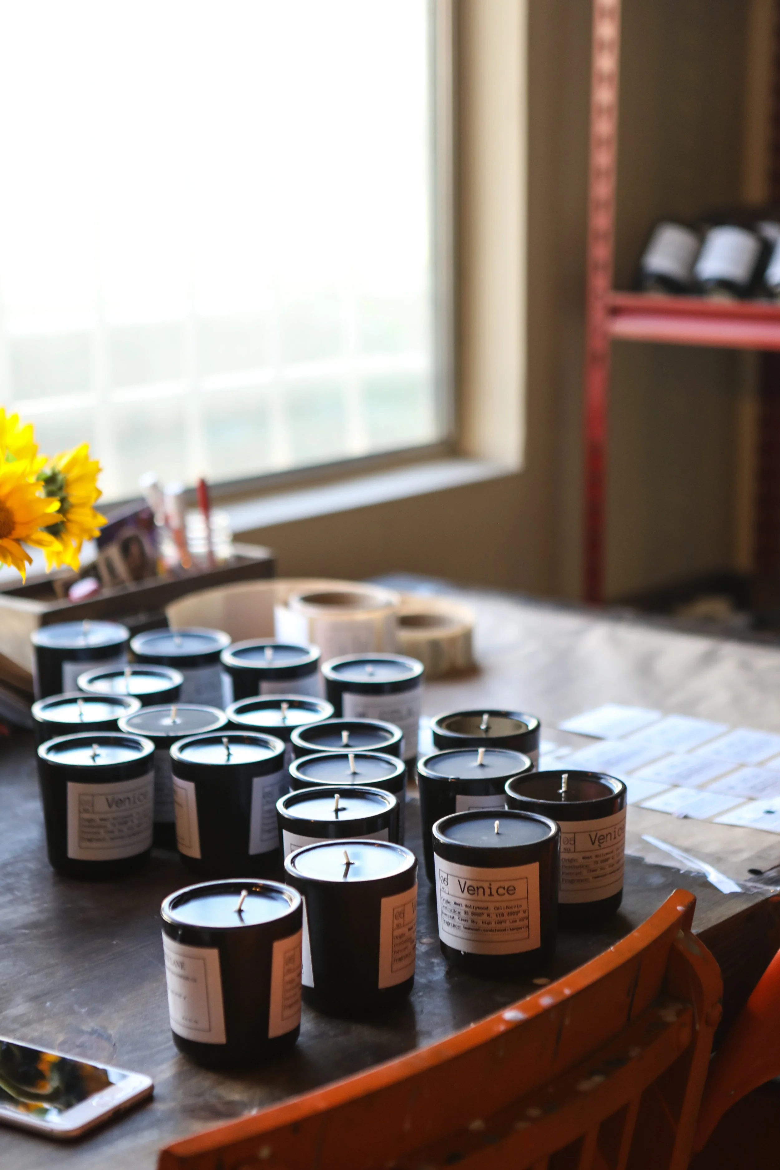 I named my company Flores Lane, and in the following months I began devoting more time to it. In the beginning, I was selling scrubs, lip balms, deodorants, sprays—and candles. I was exhausting myself making everything, I wasn’t perfecting any one product or bringing enough to the table. Sitting back and looking at sales, candles were clearly selling better, so I ditched the other products to perfect my craft.