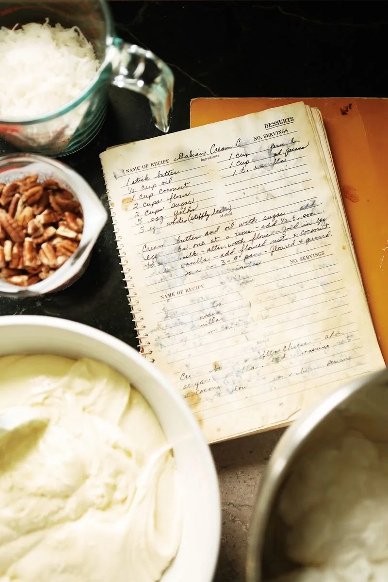As a child this was the fancy cake that would be prepared for church gatherings, funeral dinners, of the Ashby Christmas. This cake was one that intimidated me as a child and it took me many years before I desired to master it. In reality it is a very easy and delicious cake, sure to always be a crowd pleasure and one that feels instantly nostalgic.