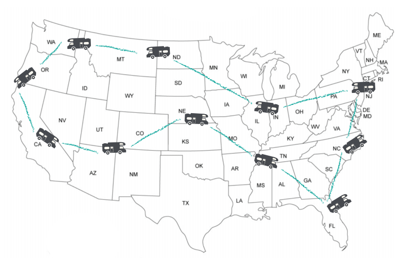 New York City, Pittsburg, Cleveland, Chicago, Minneapolis, Bozeman Montana, Seattle, Portland, San Francisco, Los Angeles, Las Vegas, Paige Arizona, Denver, Lincoln Nebraska, St. Louis, Nashville, Atlanta, Savannah, Charleston, Washington DC, and Boston.