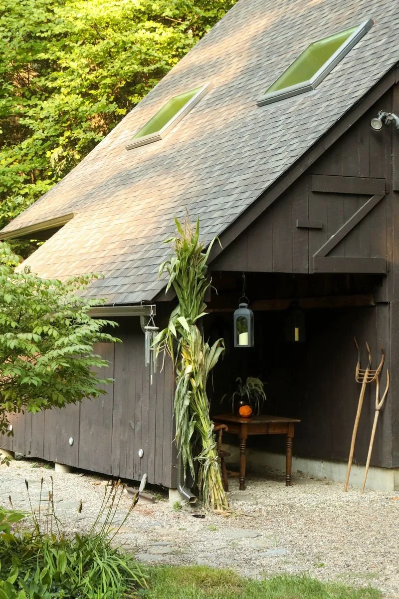 “When we moved to be close to our daughter, I was determined to find a special place where my desire for authentic surroundings could flourish,” says Susan. Susan continues that the stars aligned and a house, with a barn and charming chicken coop set on a 28 acre wooded piece of hilltown heaven, presented itself like the best gift ever.” The home with handcrafted windows, doors, hardware along with plastered walls, ceilings and an abundance of hand planed wood walls, are some of the things that took their breath away. A walking tour of the rugged terrain was a magical “seal the deal” moment as they feel most comfortable in quiet natural places where they say they are entertained by owls having conversations with one another, and an occasional visit by bears.